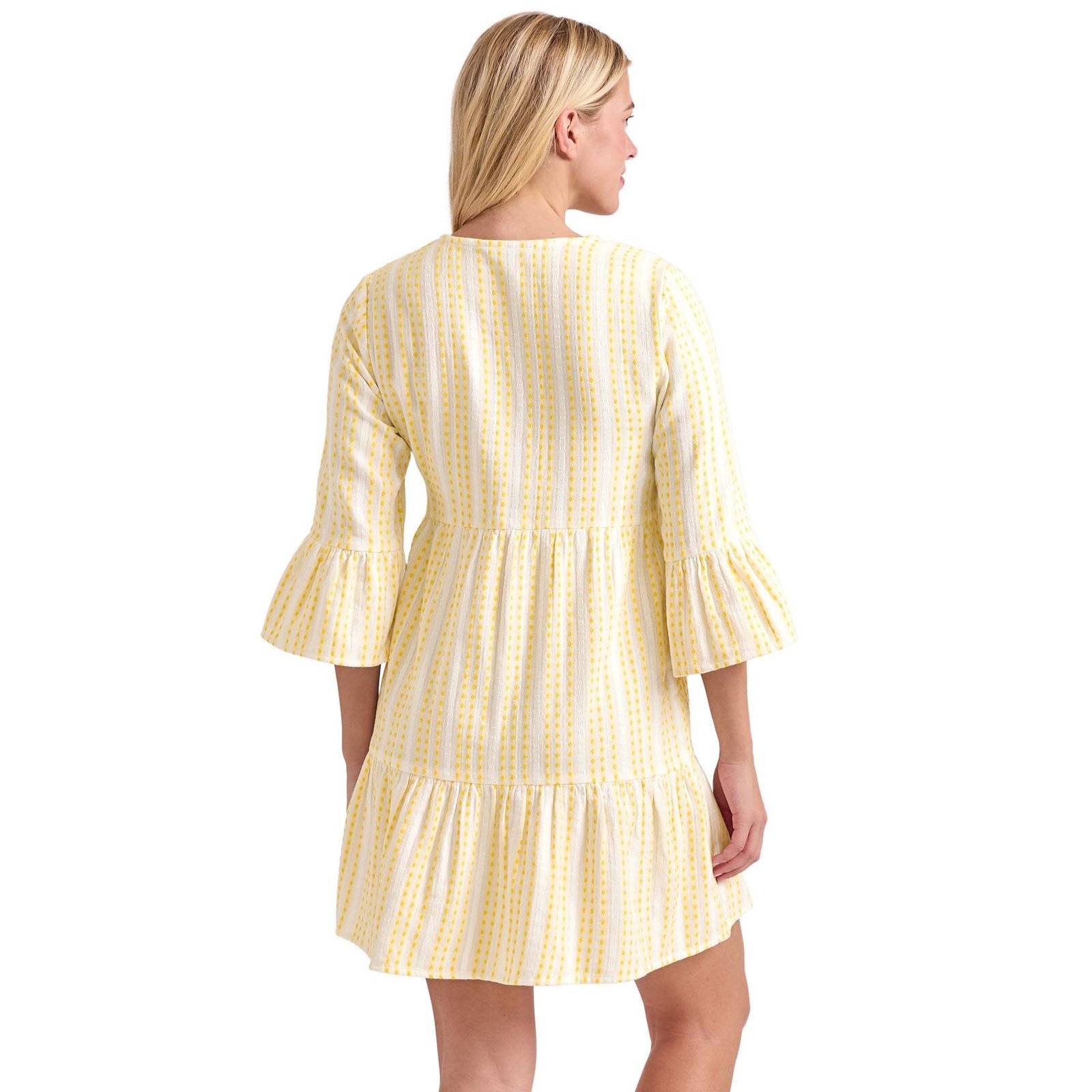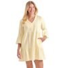 Have fun at the beach in the Tommy Bahama Cotton Dobby Tiered Dress Cover Up in Bright Pineapple. The Cotton Dobby Tiered Dress Cover Up by Tommy Bahama is made of 100% Cotton. The Cotton Dobby Tiered Dress Cover Up has a V neckline and pockets. For best results. handwash your Tommy Bahama swimwear.