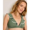 Make a splash on the island in the Tommy Bahama Island Cays Cabana Ruffle Top – Tea Leaf. This Tommy Bahama Top is made of 95% Recycled Nylon. 5% Spandex. For best results. hand wash your Tommy Bahama Swimwear.
