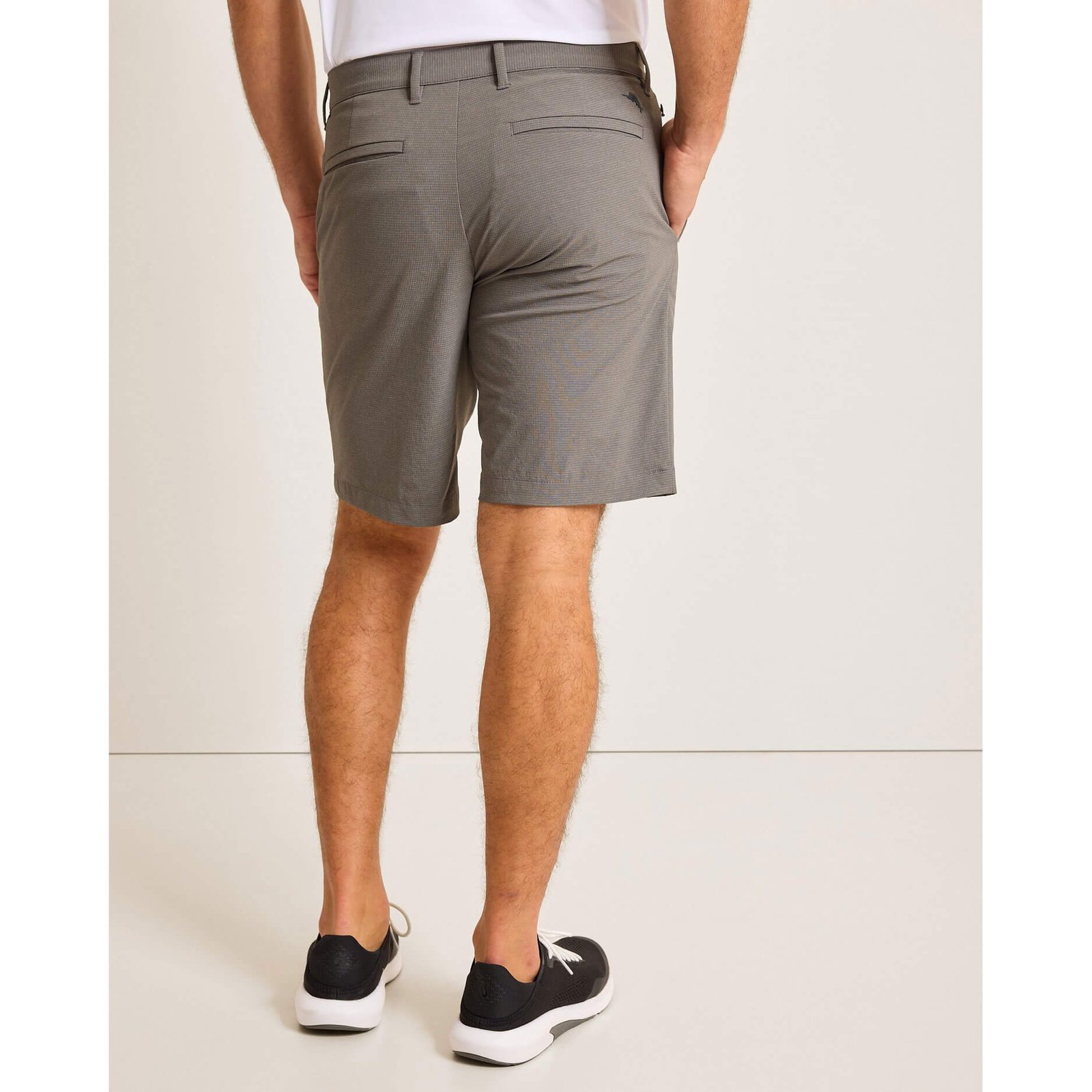 Take a swing in this Tommy Bahama IslandZone 9-Inch Chip Shot Shorts in Fog Grey. This 9-Inch Chip Shot Shorts by Tommy Bahama features solid recycled nylon / recycled poly stretch ripstop flat front with quarter top front pocket. hidden zip pocket and double welt back pockets. This Tommy Bahama 9-Inch Chip Shot Shorts is made of 71% Recyclednylon. 14% Spandex. 9% Recycled Polyester. 6% Nylon.