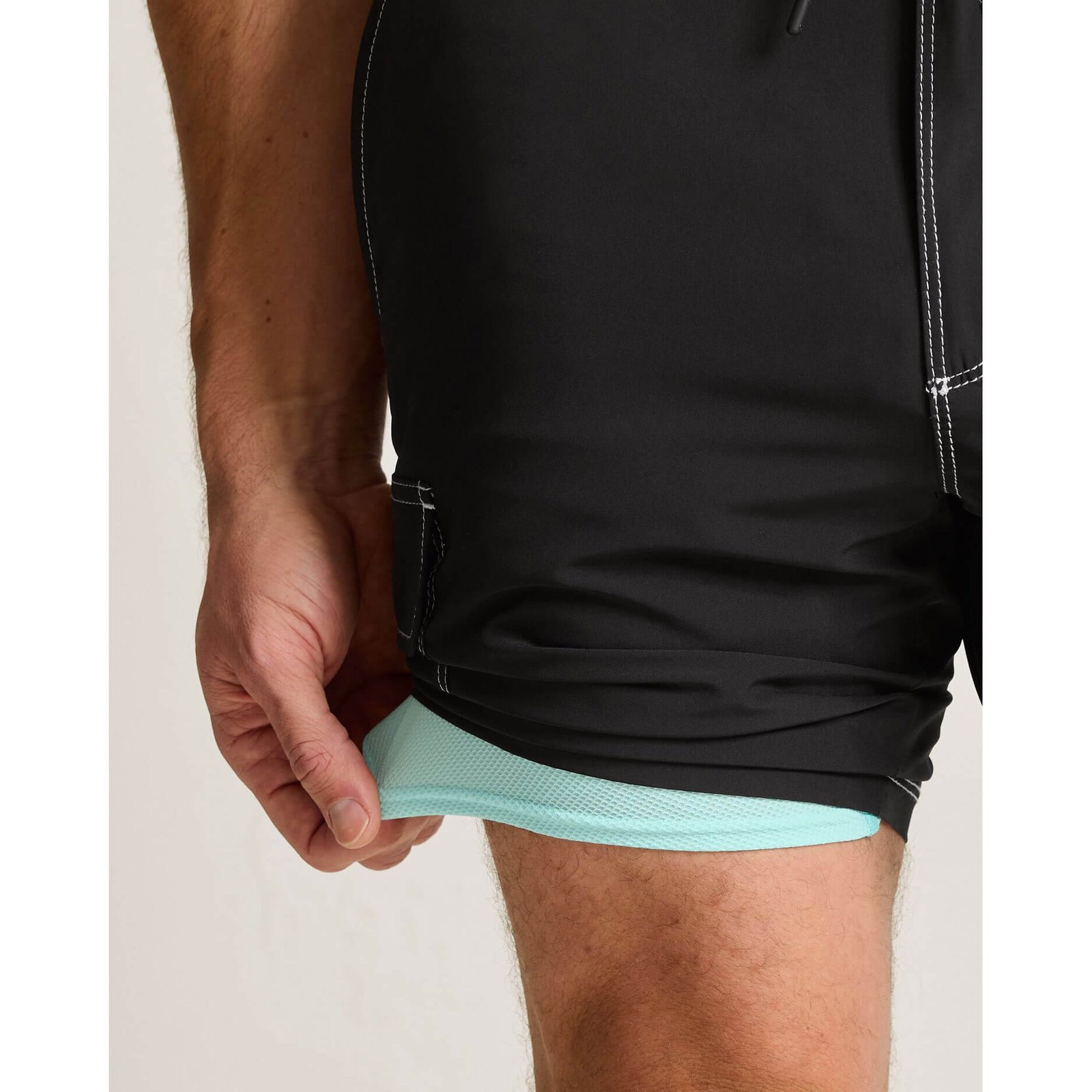 Head to the beach and look great in this Tommy Bahama 8-Inch Baja Bay Swim Trunks in Black. This 8-Inch Baja Bay Swim Trunks by Tommy Bahama features solid recycled polyester/spandex poplin with wicking. quick dry and UPF 30. half elastic waistband with back flap pocket and performance boxer brief liner. This Tommy Bahama 8-Inch Baja Bay Swim Trunks is made of 90% Recycled Polyester. 10% Spandex.