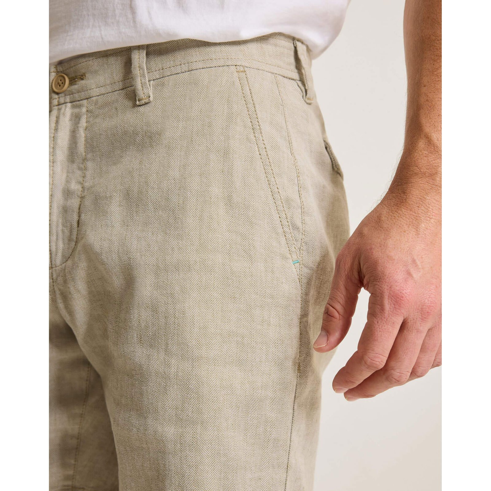 Relax in paradise in this Tommy Bahama 9-Inch Beach Coast Linen Shorts in Beach. This 9-Inch Beach Coast Linen Shorts by Tommy Bahama features yarn dyed linen/cotton/spandex flat front with quarter top front pockets and single welt flap back pockets. This Tommy Bahama 9-Inch Beach Coast Linen Shorts is made of 58% Linen. 40% Cotton. 2% Spandex.