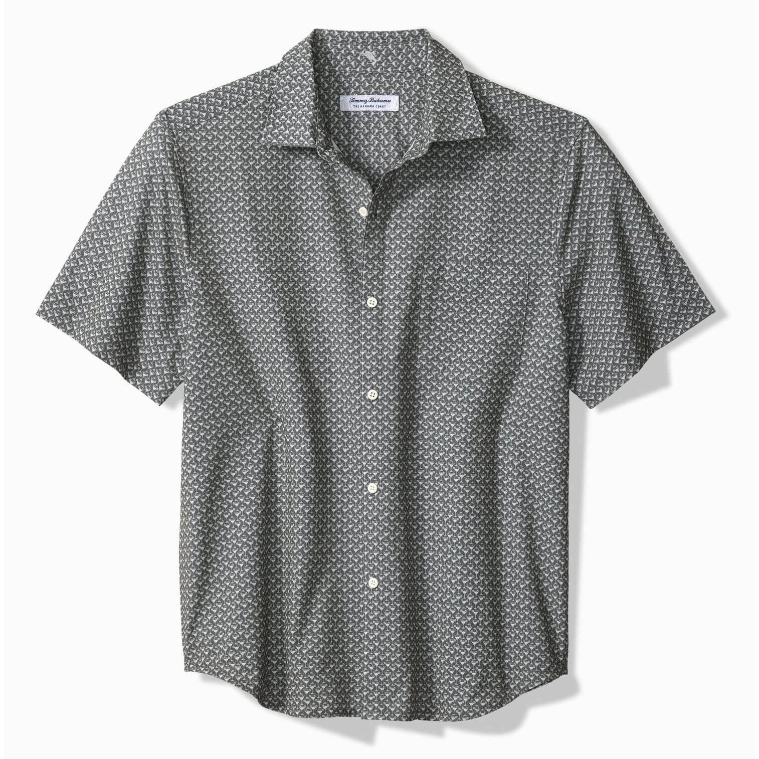 Level up your fashion style in this Tommy Bahama Men’s Bahama Coast Teeny Martini Camp Shirt in Spa Stone. This Bahama Coast Teeny Martini Camp Shirt by Tommy Bahama features printed perforated short sleeve coastal collar. slightly rounded pocket with stretch. This Tommy Bahama Bahama Coast Teeny Martini Camp Shirt is made of 83% Recycled Polyester. 17% Spandex.