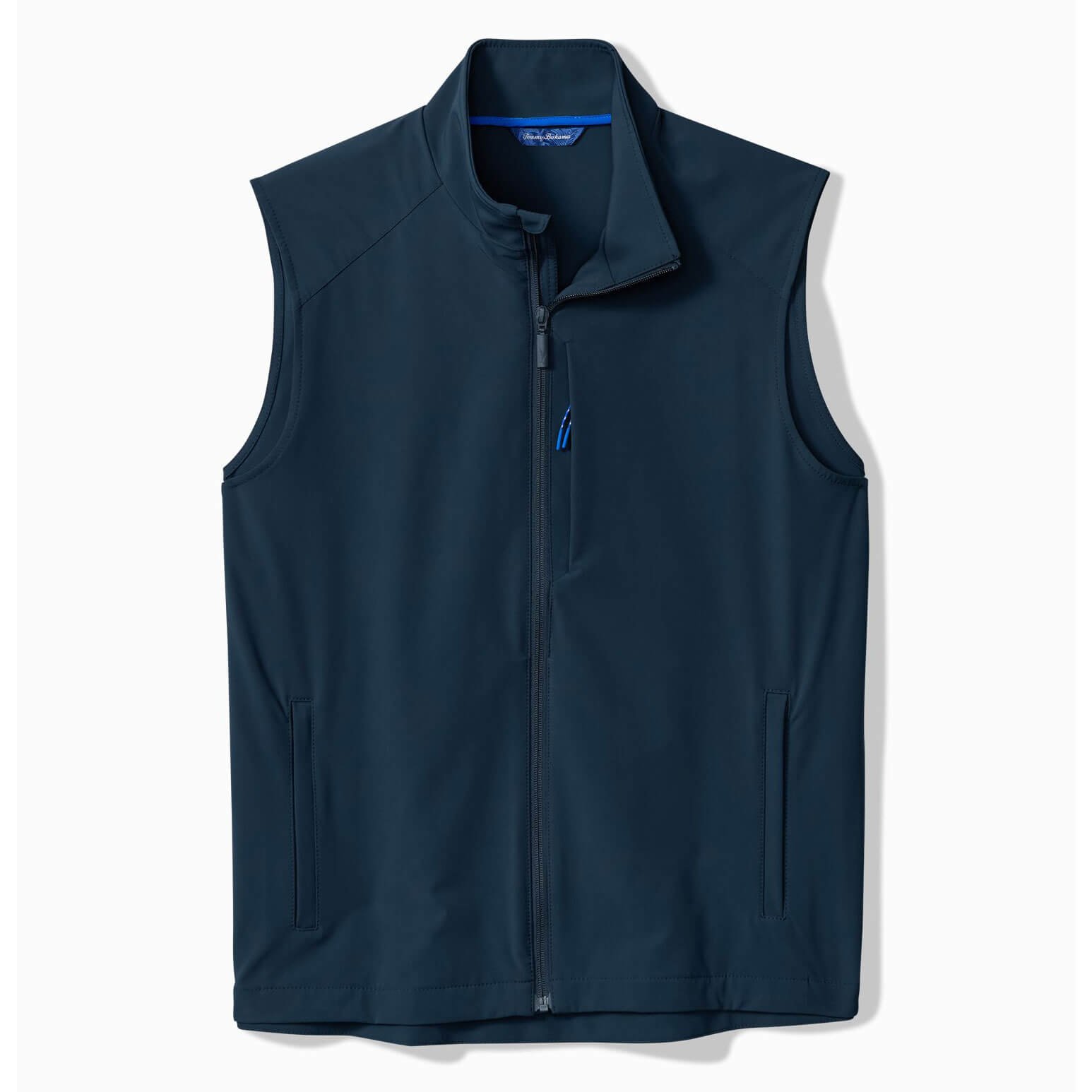 Layer up and look great in this Tommy Bahama Men’s Clubhouse Pro Vest in Ocean Deep. This Clubhouse Pro Vest by Tommy Bahama features solid water resistant full zip vest with lower front pocket and chest pocket. This Tommy Bahama Clubhouse Pro Vest is made of 84% Recycled Nylon. 16% Spandex.