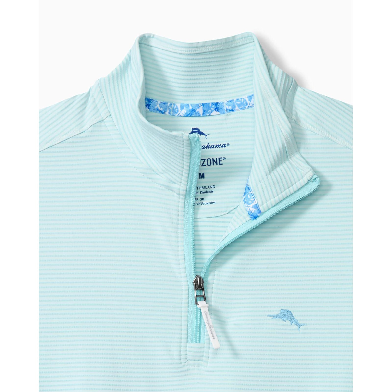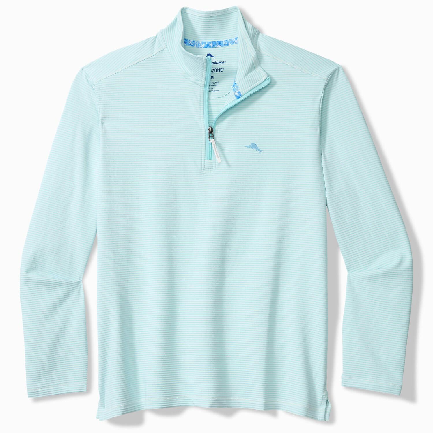 Take a tour of the island in this Tommy Bahama Men’s Costa Wave Half Zip Pullover Sweater in Starlight Blue. This Costa Wave Half Zip Pullover Sweater by Tommy Bahama features solid textured stripe long sleeve 1/2 zip with wicking. quick dry. active zipper detail and marlin embroidery. This Tommy Bahama Costa Wave Half Zip Pullover Sweater is made of solid textured stripe long sleeve 1/2 zip with wicking. quick dry. active zipper detail and marlin embroidery. This Tommy Bahama Costa Wave Half Zip Pullover Sweater is made of 60% Recycled Nylon. 31% Recycled Polyester. 9% Spandex.