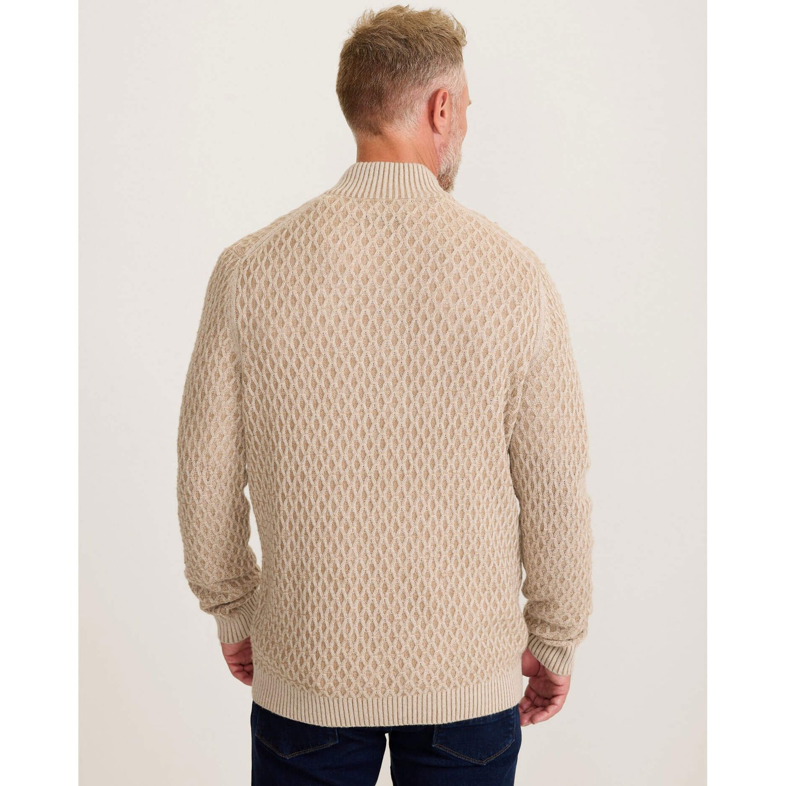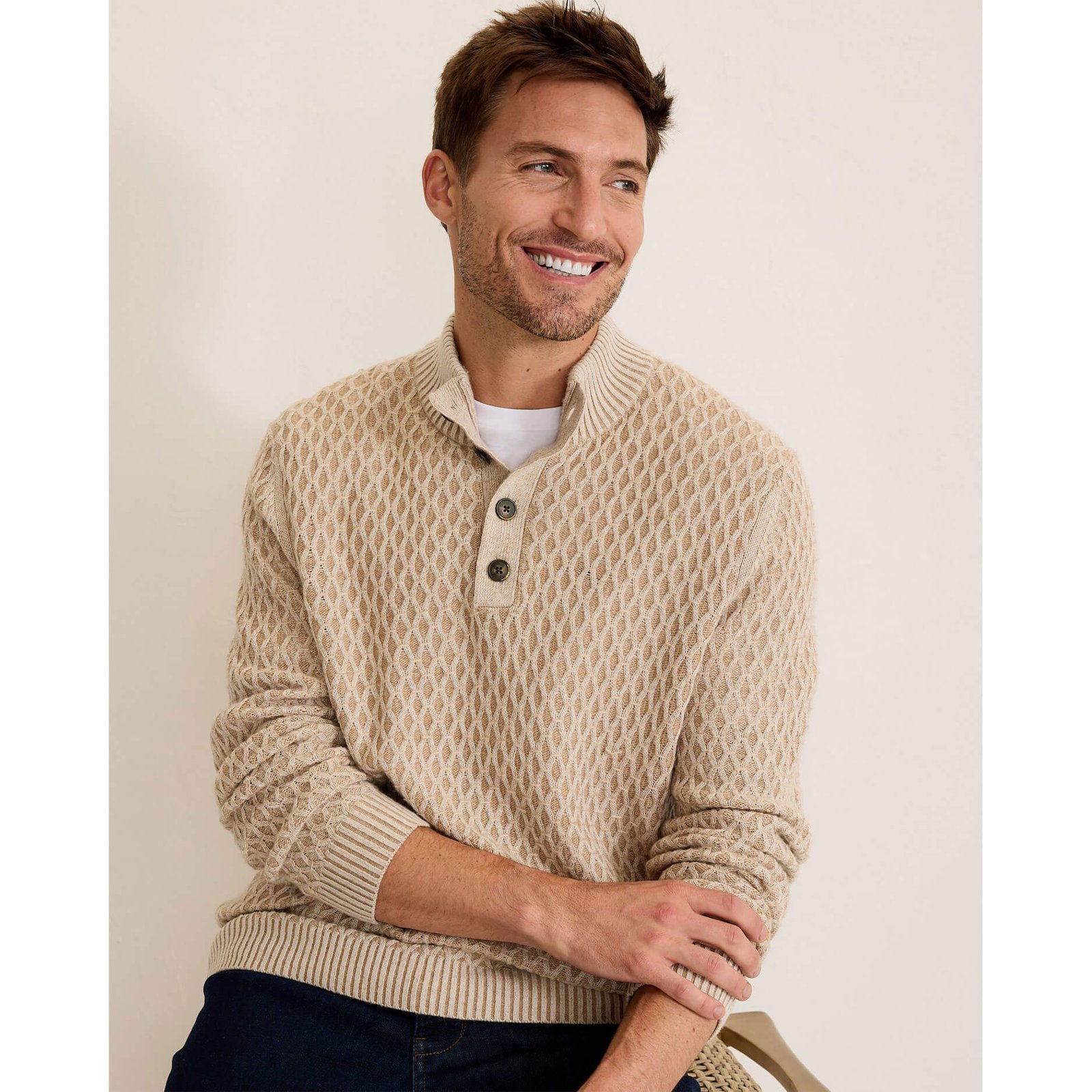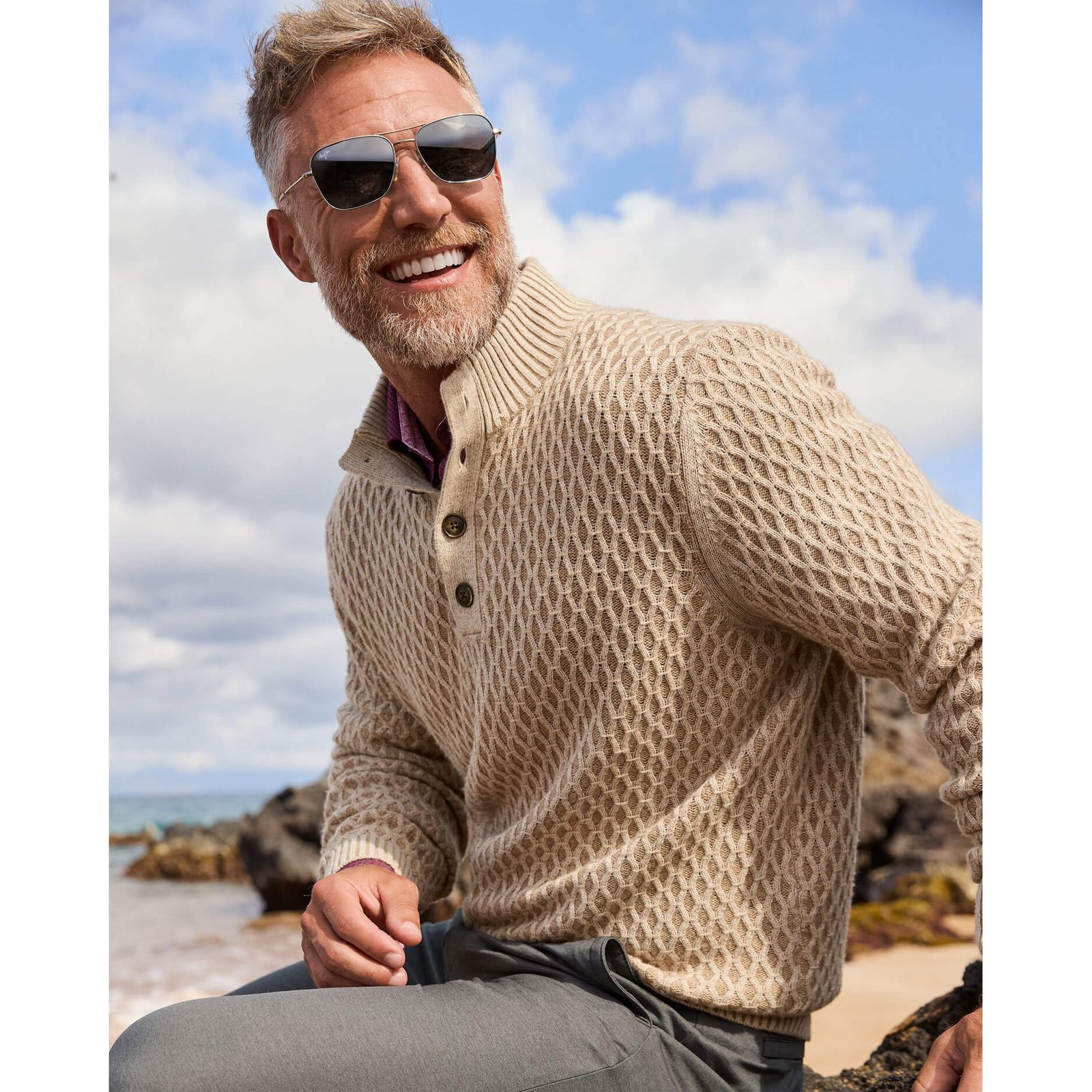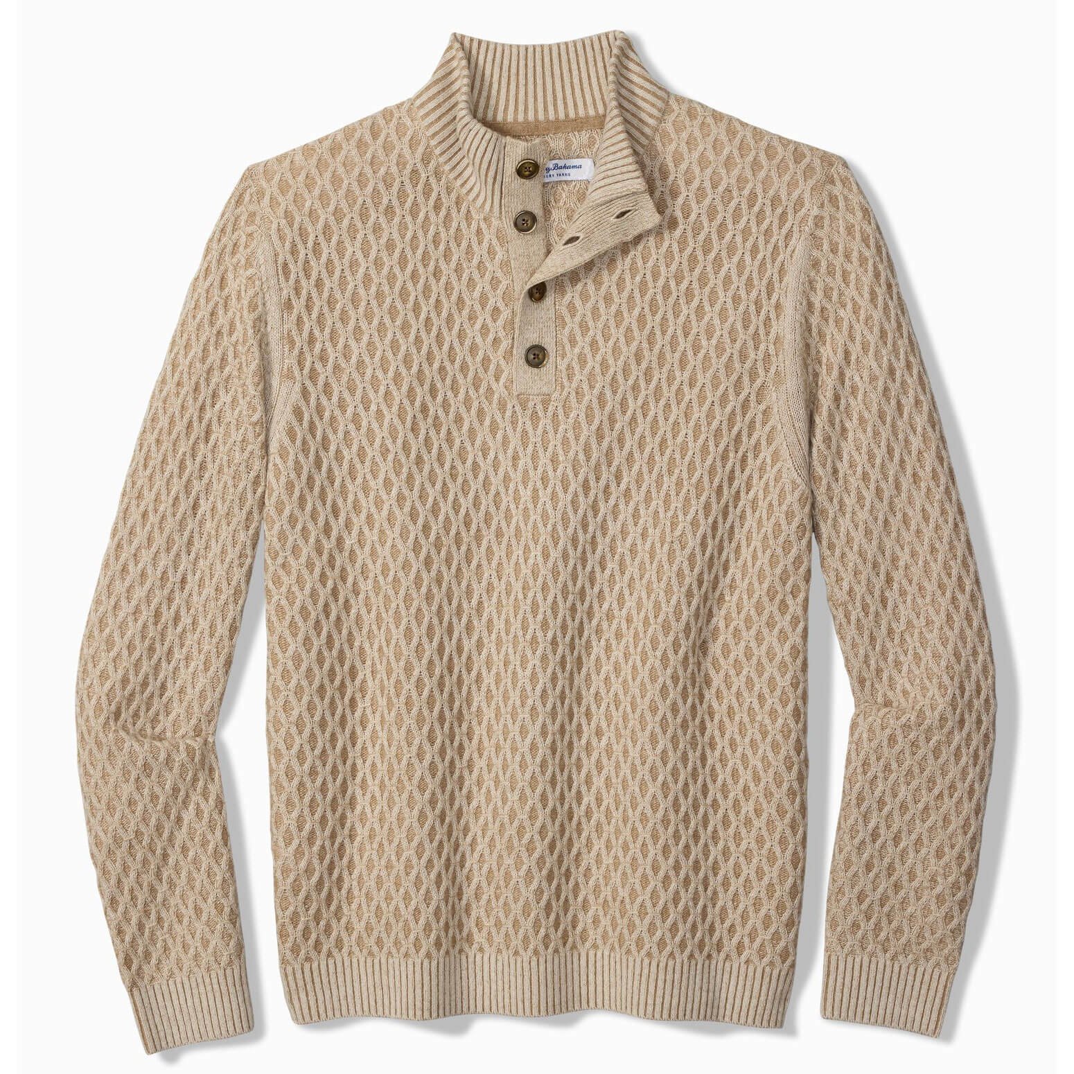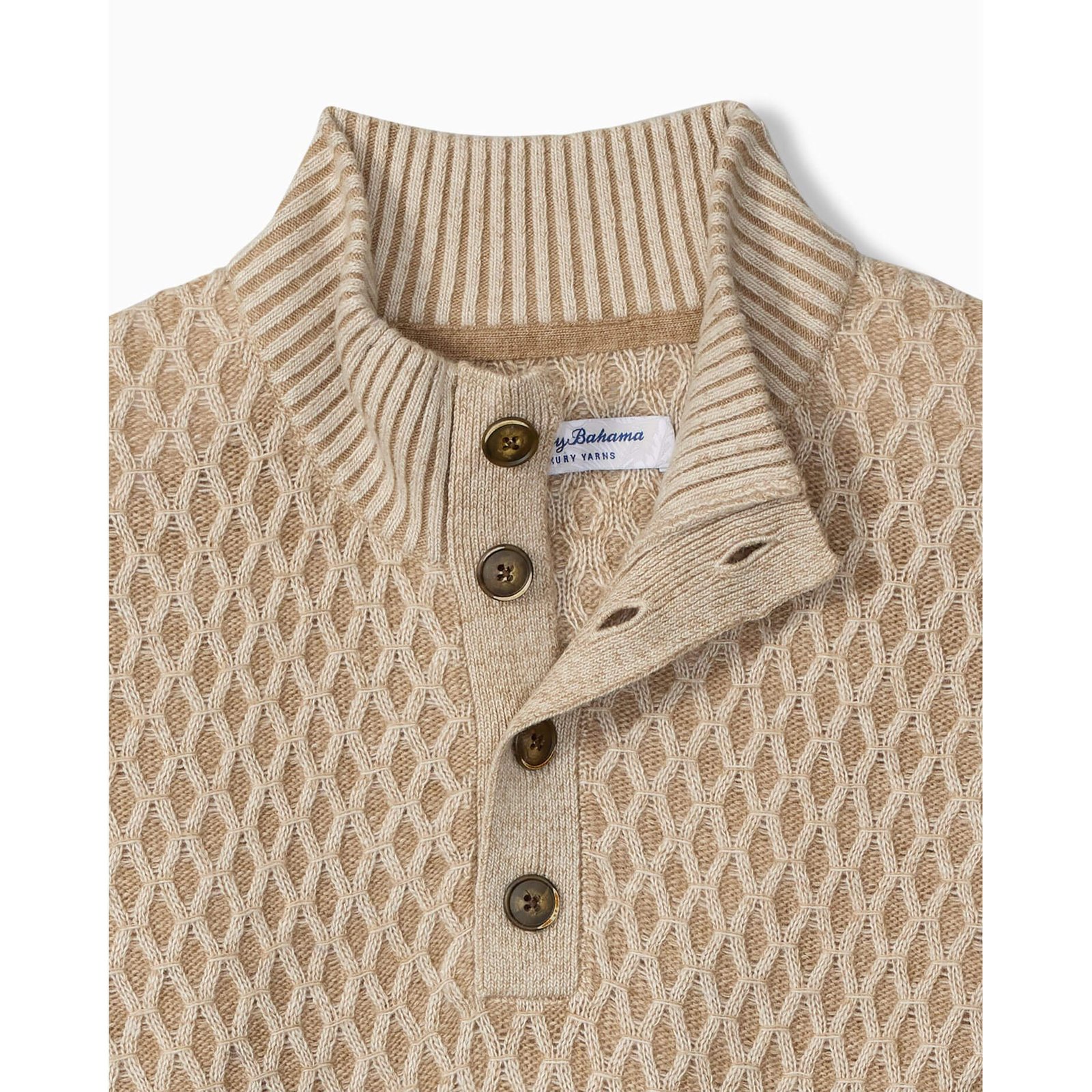 Tommy Bahama Men’s Cross Cable Button Neck Sweater – Hazelnut Cream