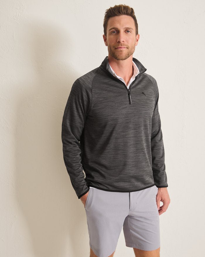 Tommy Bahama Men’s IslandZone Palm Pro Half Zip Pullover Sweater – Black