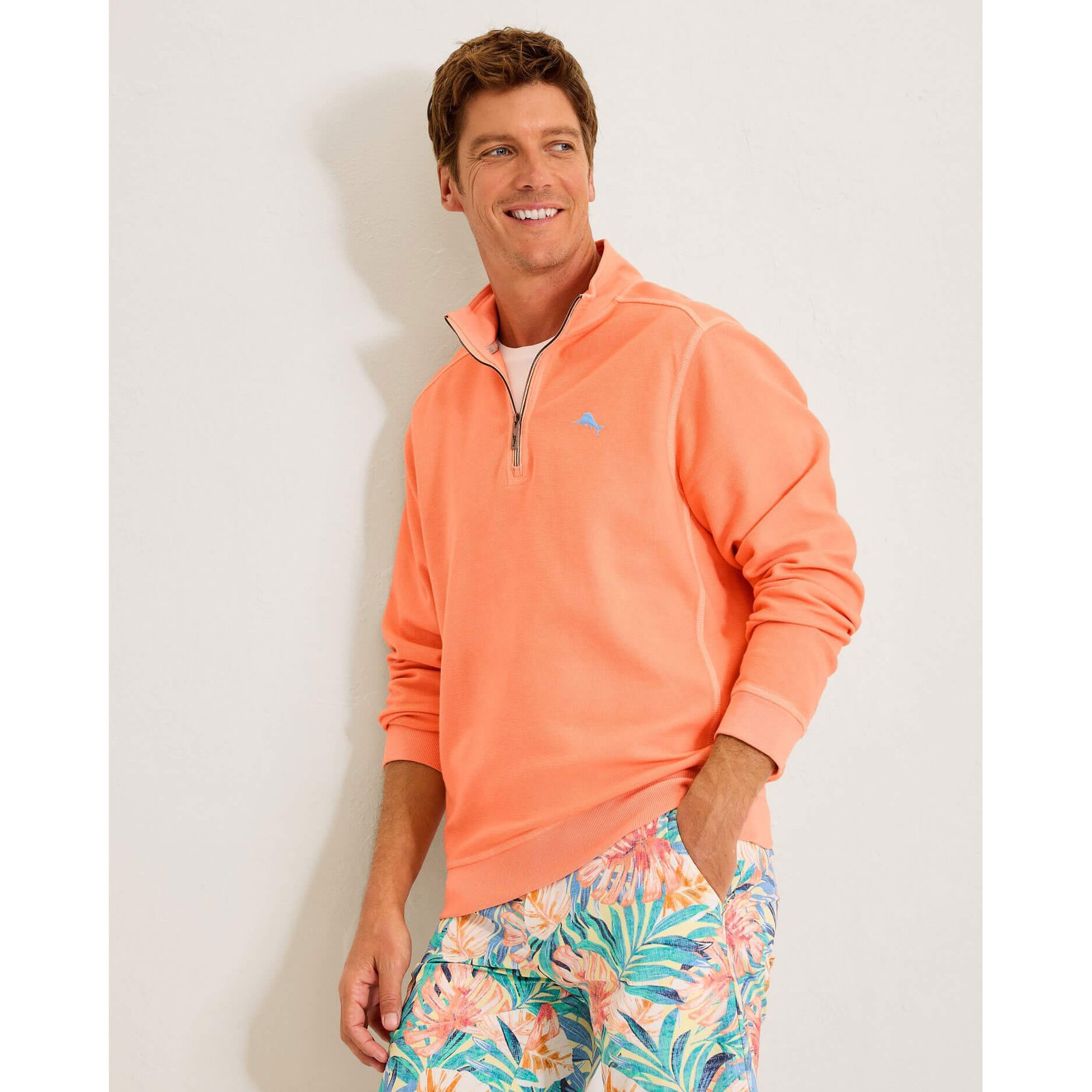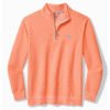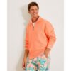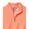 Elevate your wardrobe with this Tommy Bahama Men’s Montego Bay Half Zip Pullover Sweater in Bright Peach. This Montego Bay Half Zip Pullover Sweater by Tommy Bahama features washed solid textured long sleeve 1/2 half zip with rib and woven trims. novelty coverstitch and accent marlin. This Tommy Bahama Montego Bay Half Zip Pullover Sweater is made of washed solid textured long sleeve 1/2 half zip with rib and woven trims. novelty coverstitch and accent marlin. This Tommy Bahama Montego Bay Half Zip Pullover Sweater is made of 81% Cotton. 19% Tencel™Lyocell.