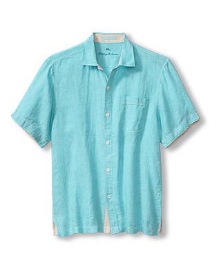 Have fun and relax on the island in this Tommy Bahama Men’s Paradise Breezer Linen Short Sleeve Camp Shirt in Blue Radiance. This Paradise Breezer Linen Short Sleeve Camp Shirt by Tommy Bahama features yarn dyed short sleeve craig collar with rounded pocket and straight hem. This Tommy Bahama Paradise Breezer Linen Short Sleeve Camp Shirt is made of 100% Linen.