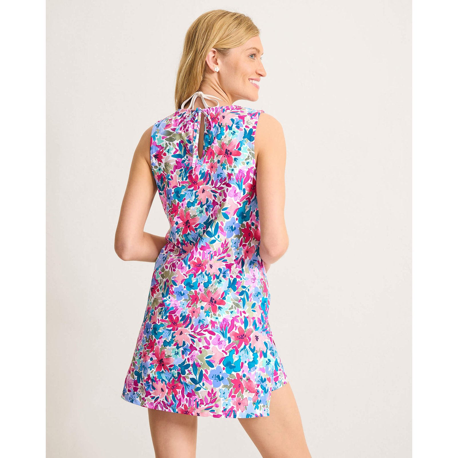 Relax on the island in the Tommy Bahama Watercolor Floral Split Neck Romper Cover Up – Dusty Lupine. This Tommy Bahama Cover Up is made of 85% Recycled Nylon. 15% Spandex. For best results. hand wash your Tommy Bahama Swimwear.