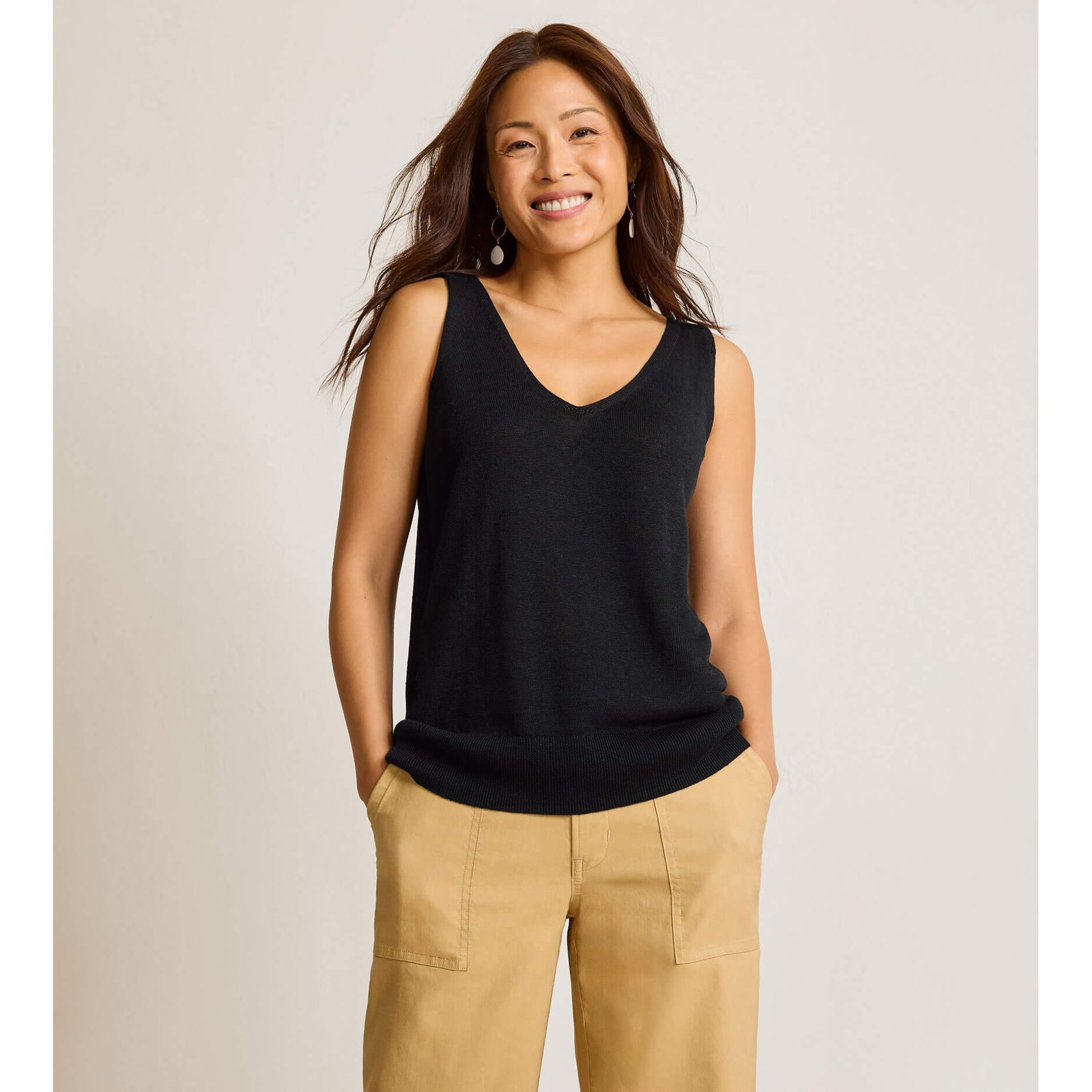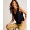 Have fun in the sun in this Tommy Bahama Women’s Addison Tank Top in Black. This Addison Tank Top by Tommy Bahama features sleeveless. v-neck. back length: 22.5″ from shoulder to hem (size s). This Tommy Bahama Addison Tank Top is made of 62% Linen. 38% Lenzing™Ecovero™Viscose. Hand Wash Cold With Mild Detergent. Non-Chlorine Bleach. Do Not Twist Or Wring. Reshape And Lay Flat To Dry. Cool Iron. Can Dry Clean..