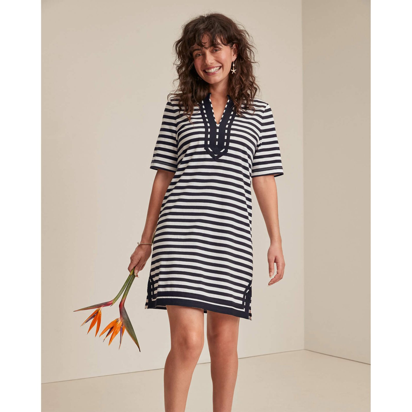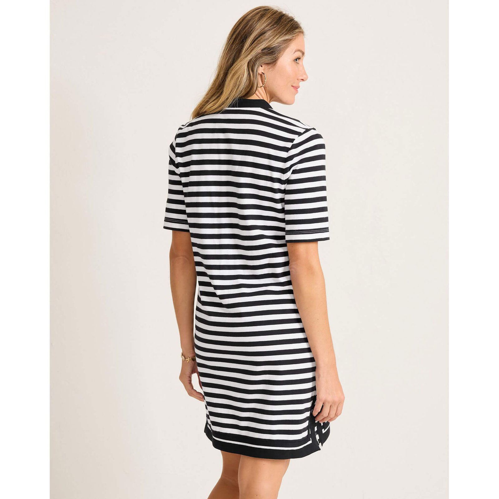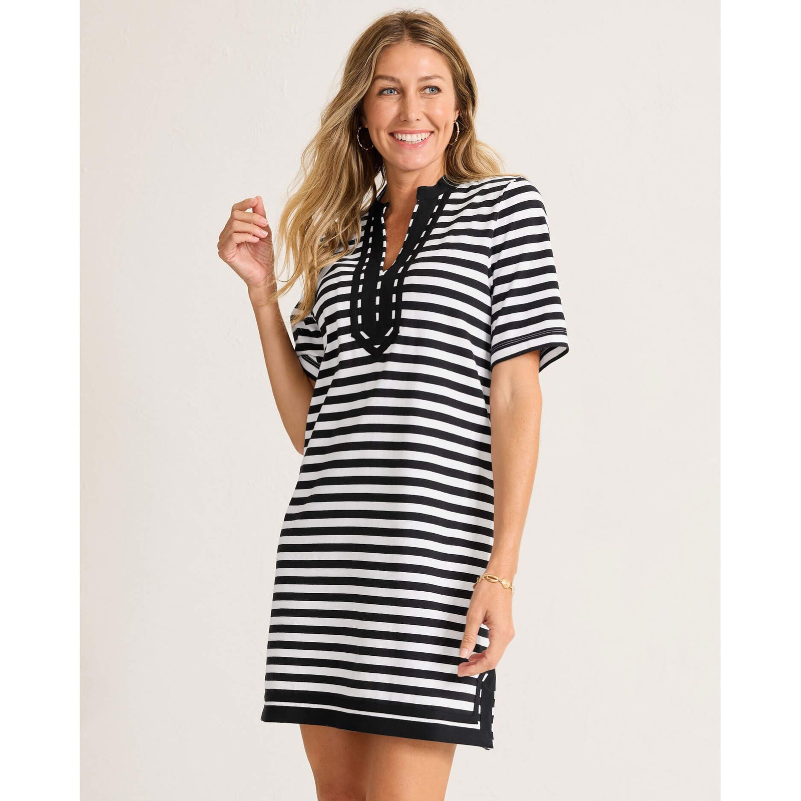 Elevate your style in this Tommy Bahama Women’s Amira Stripe Tunic Dress in Black. This Amira Stripe Tunic Dress by Tommy Bahama features short sleeve. split neck. back length: 35″ from shoulder to hem (size s). This Tommy Bahama Amira Stripe Tunic Dress is made of 100% Cotton.
