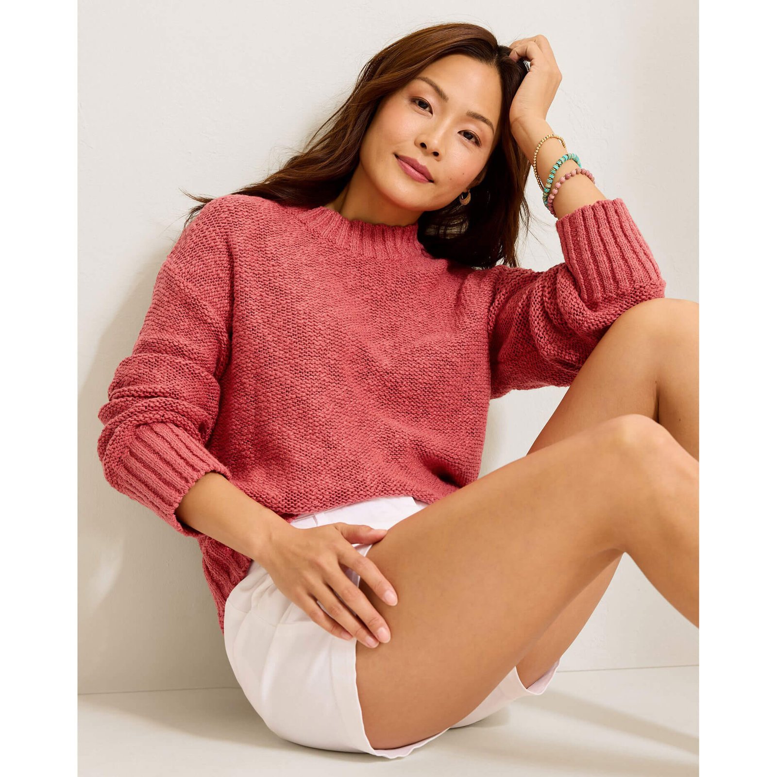 Have a fun day on the island in this Tommy Bahama Women’s Bayshore Cotton Crew Sweater in Wild Geranium. This Bayshore Cotton Crew Sweater by Tommy Bahama features long sleeve. crew neck. back length: 23″ from centerback neck to hem (size s). This Tommy Bahama Bayshore Cotton Crew Sweater is made of 100% Cotton.