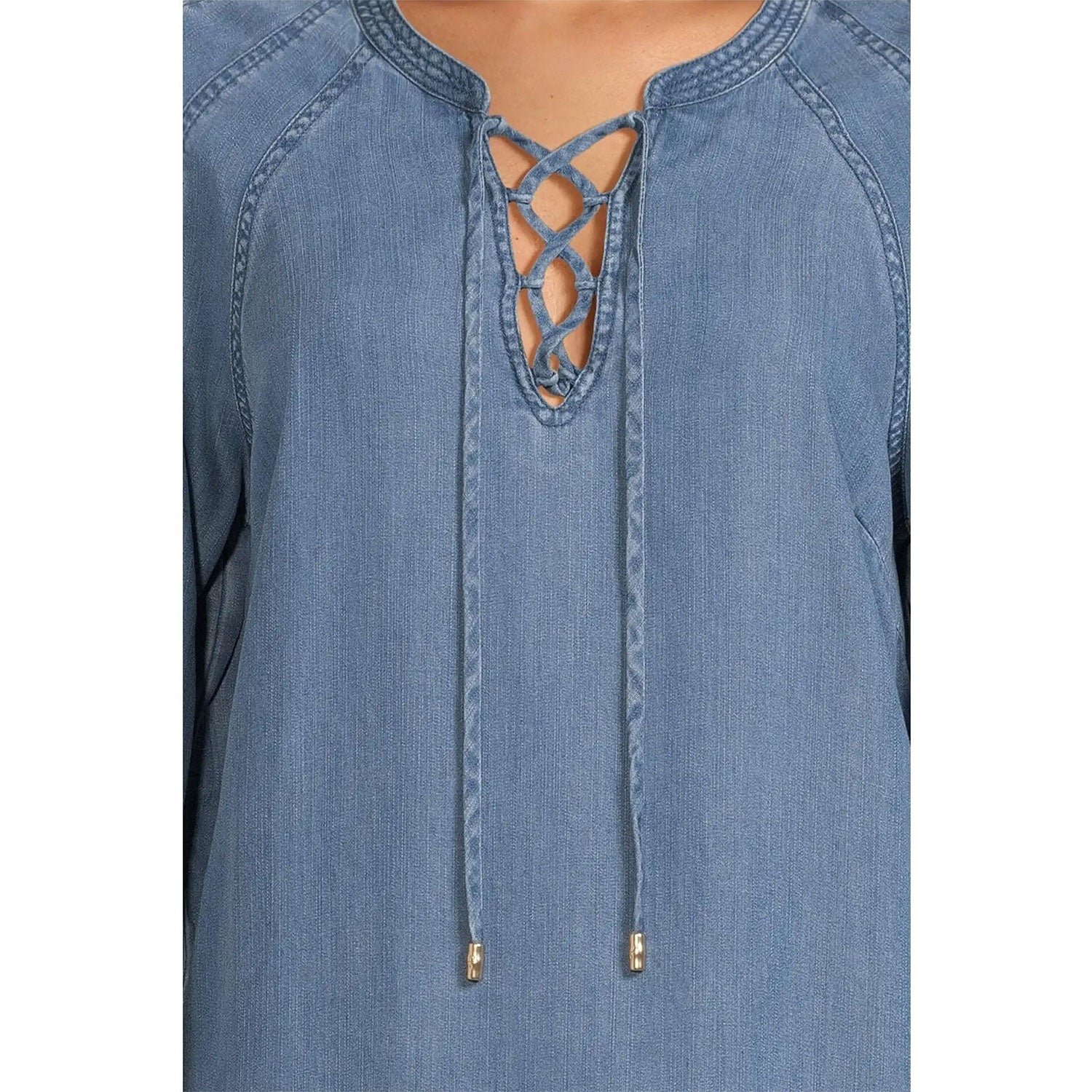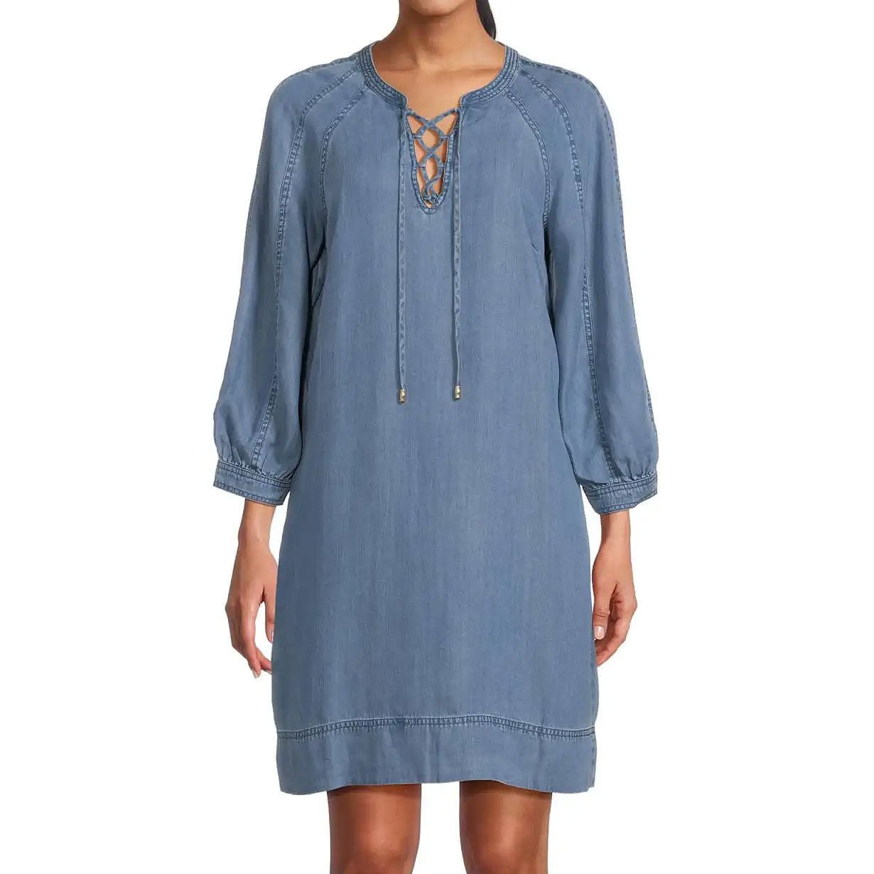 Make an entrance in this Tommy Bahama Women’s Chambray O’Lei Lace-Up Dress in Medium Indigo Wash. This Chambray O’Lei Lace-Up Dress by Tommy Bahama features long sleeve. back length: 35″ from shoulder to hem (size s). This Tommy Bahama Chambray O’Lei Lace-Up Dress is made of 91% Tencel™Lyocell. 9% Linen.