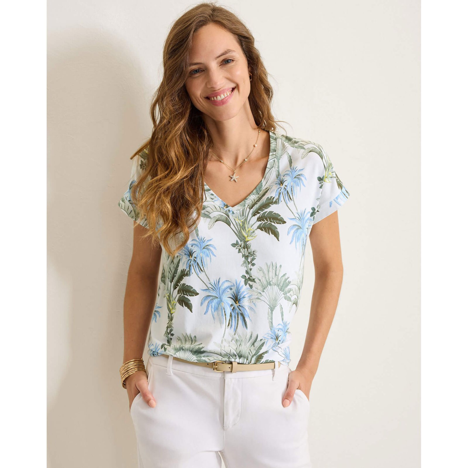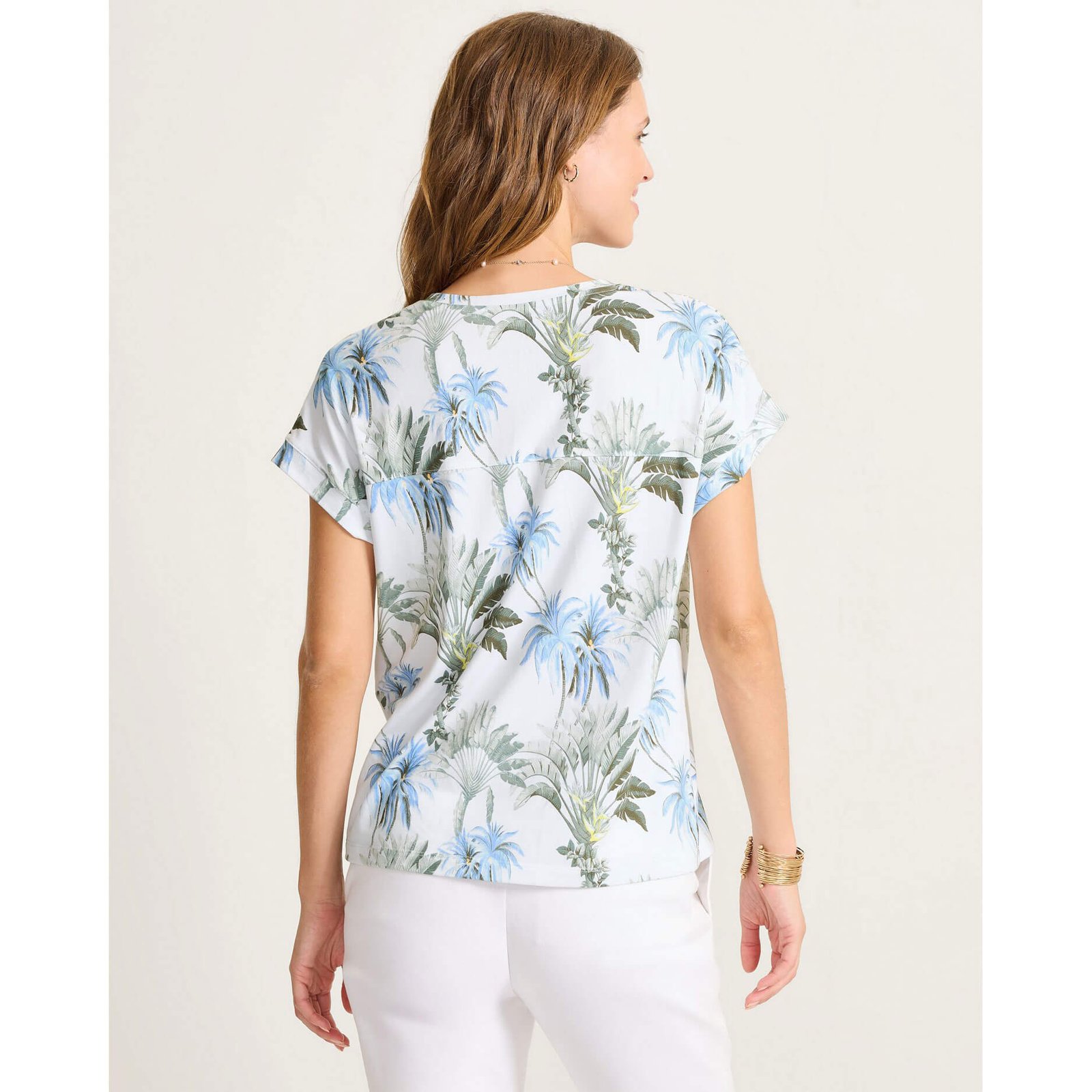 Tommy Bahama Women’s Kauai Palisade Palms V-Neck T-Shirt – White