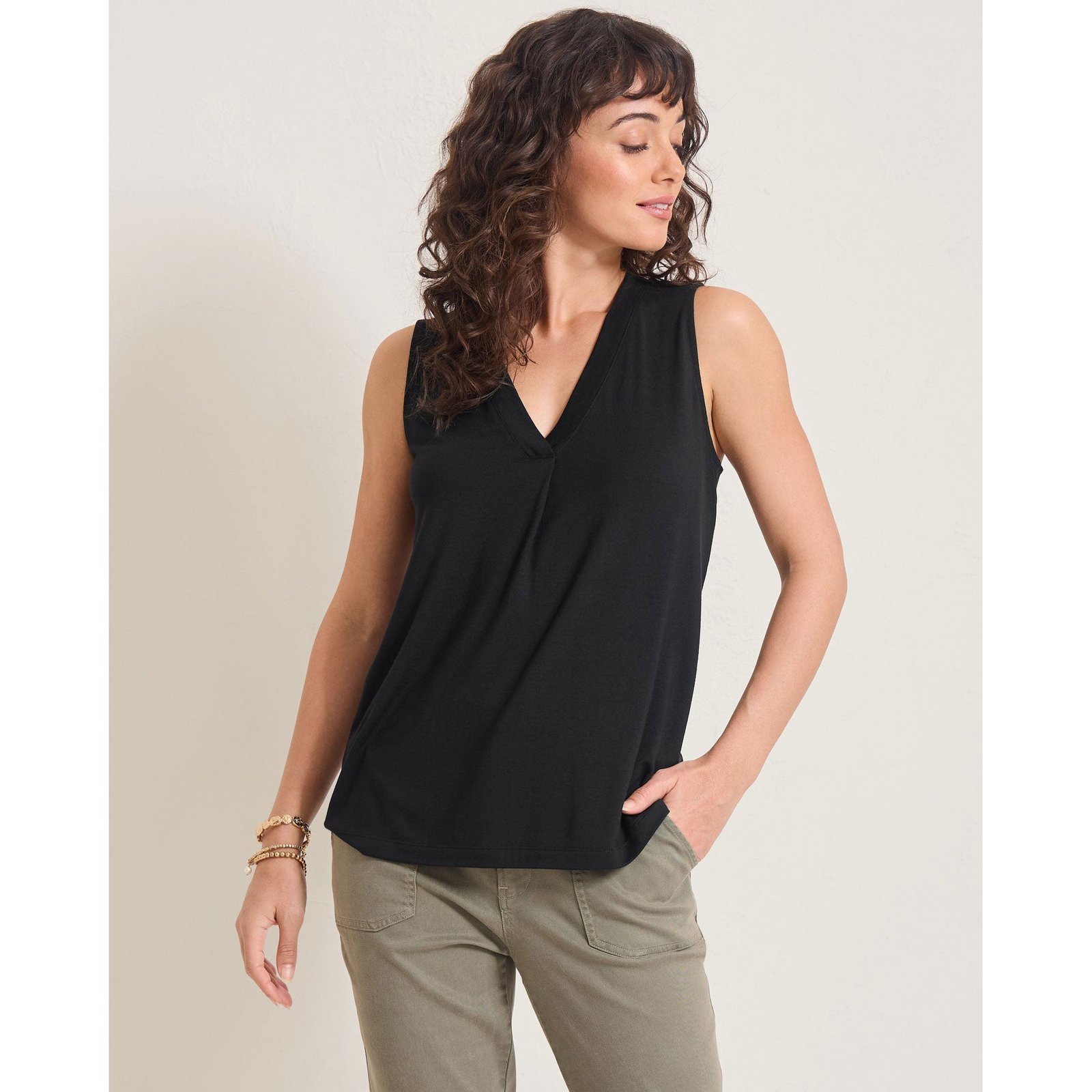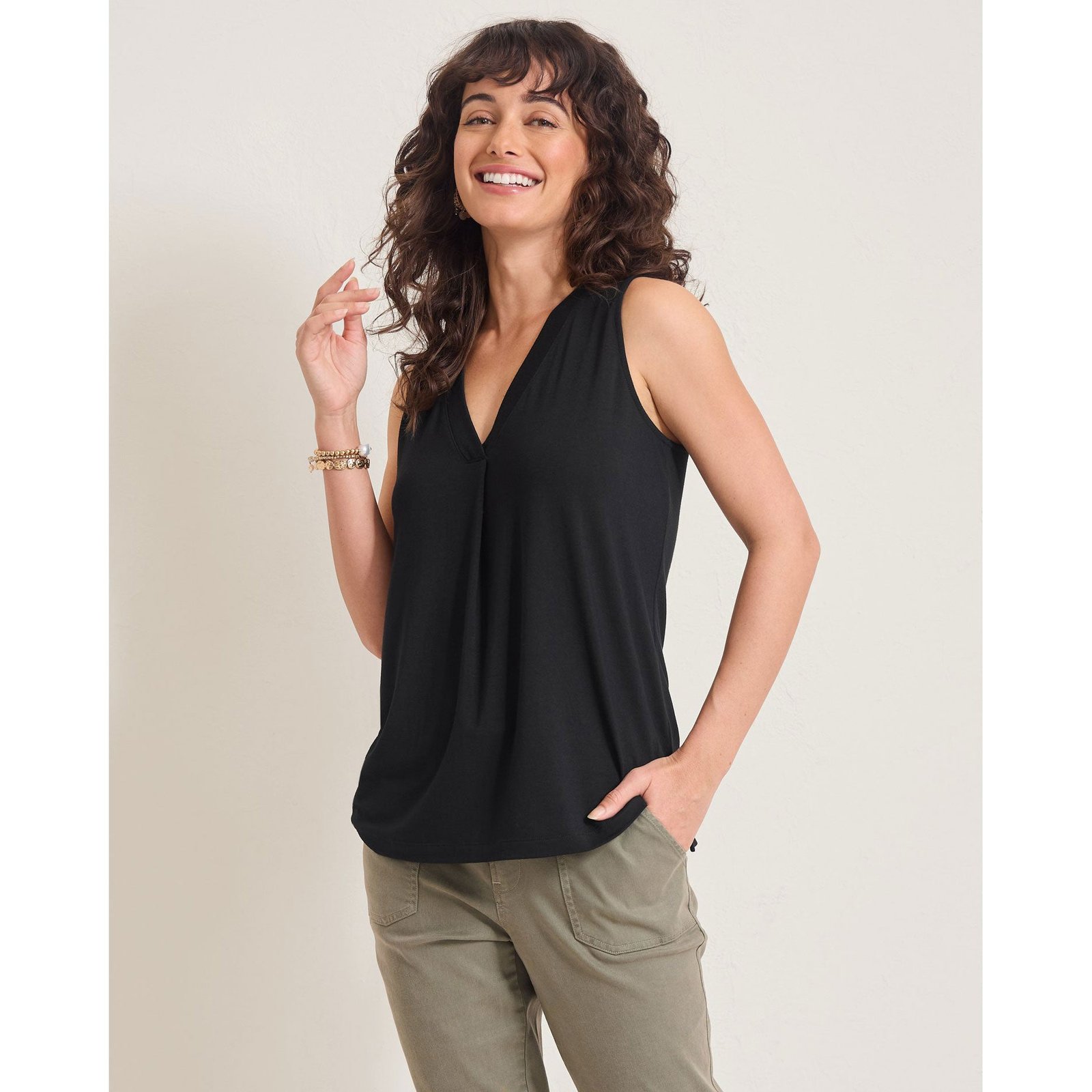Enjoy yourself on the island in this Tommy Bahama Women’s Kauai V-Neck Tank Top in Black. This Kauai V-Neck Tank Top by Tommy Bahama features sleeveless solid tank with Front length: 25″ from shoulder to hem (size S). Back length: 26″ from shoulder to hem (size S). This Tommy Bahama Kauai V-Neck Tank Top is made of 67% Tencel™Modal. 28% Polyester. 5% Spandex.