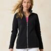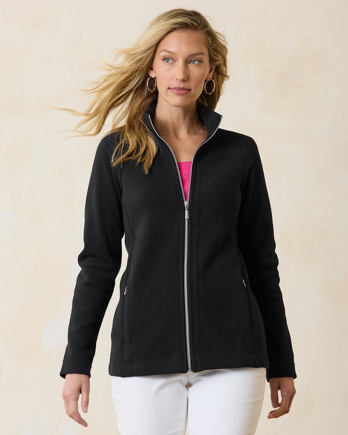 Have fun out on this island in this Tommy Bahama Women’s New Aruba Full Zip Sweatshirt in Black. This New Aruba Full Zip Sweatshirt by Tommy Bahama features Full-zip sweatshirt with a hint of stretch. Zippered pockets. Clean stitching details. Back length: 26.75″ from centerback neck to hem (size S). This Tommy Bahama New Aruba Full Zip Sweatshirt is made of 98% Cotton. 2% Spandex.