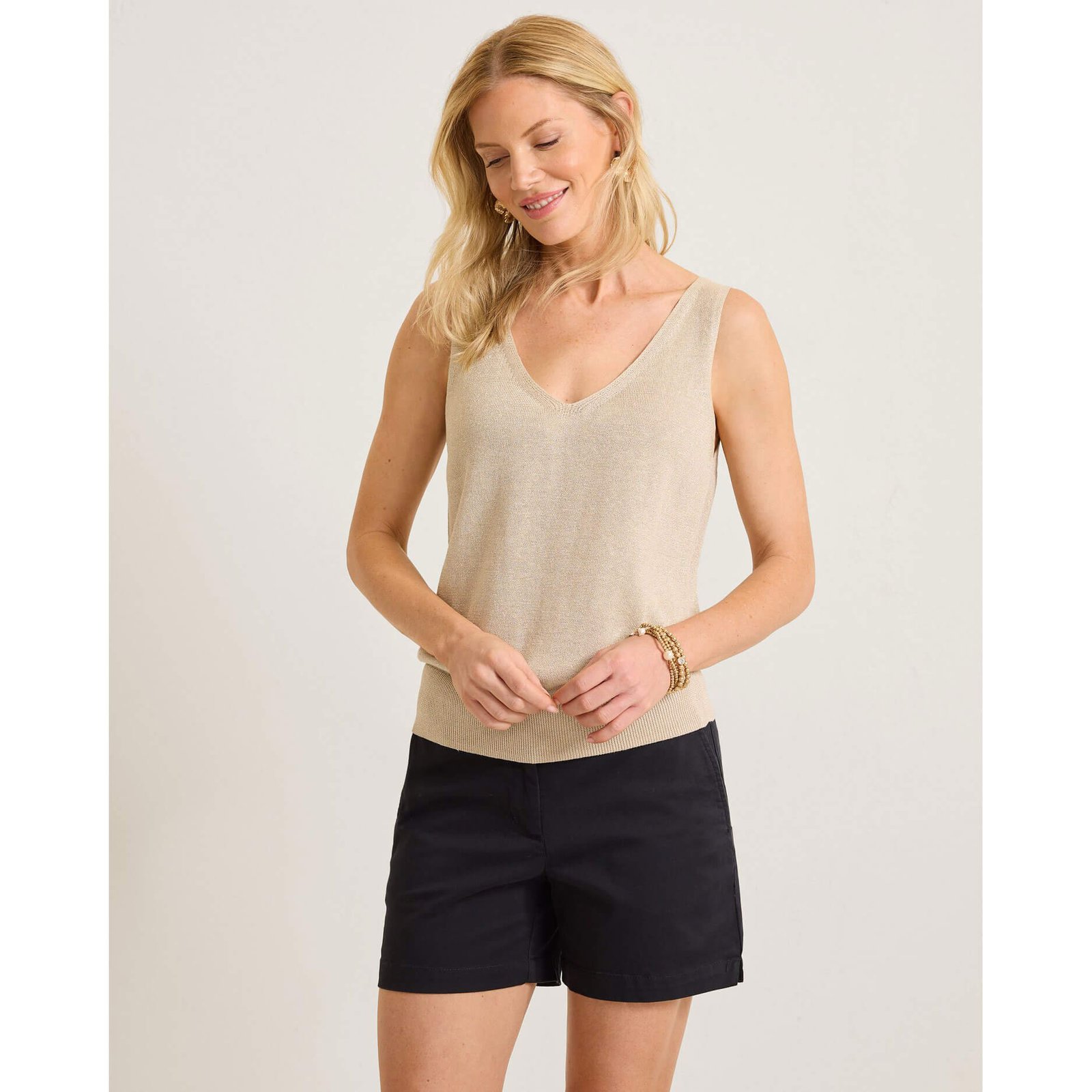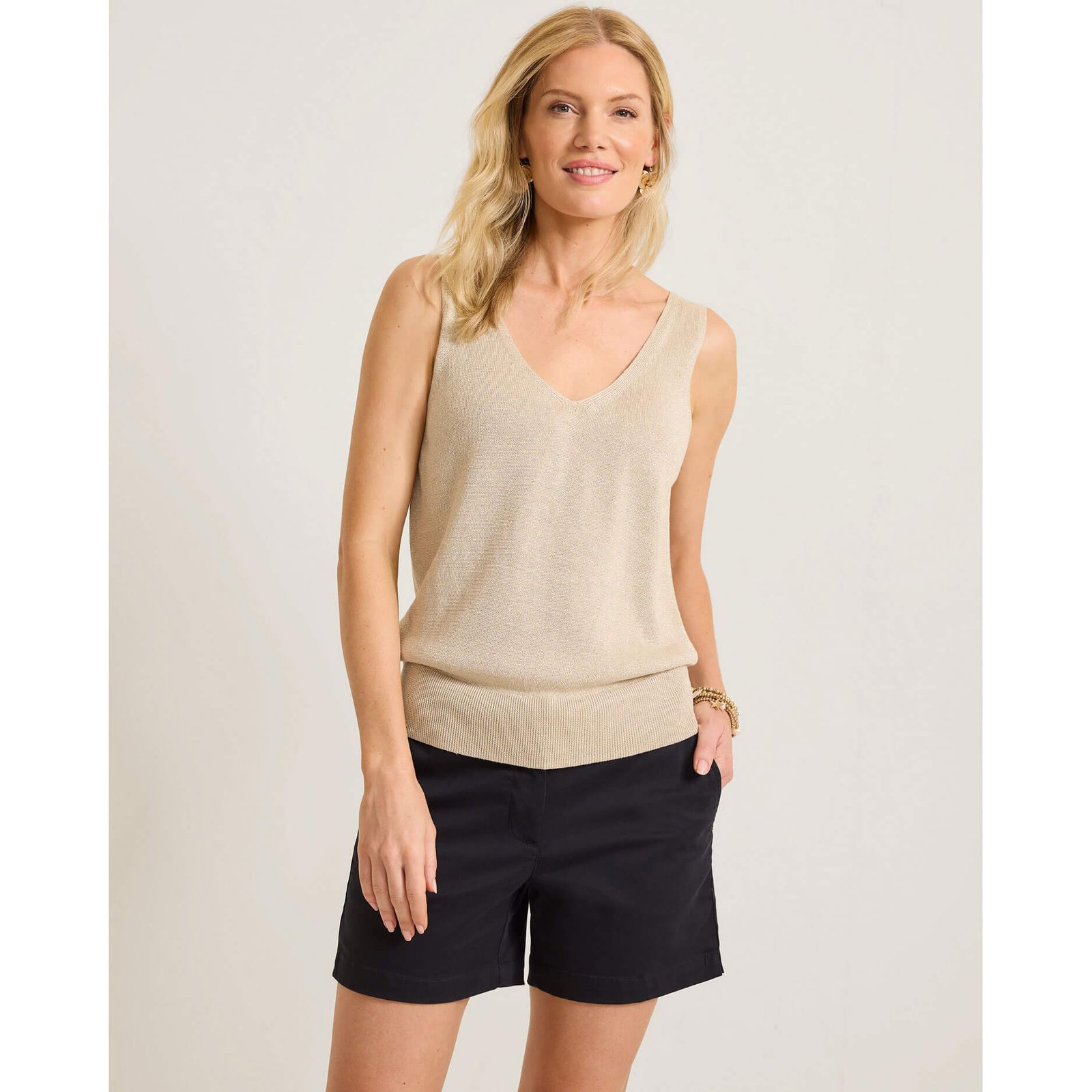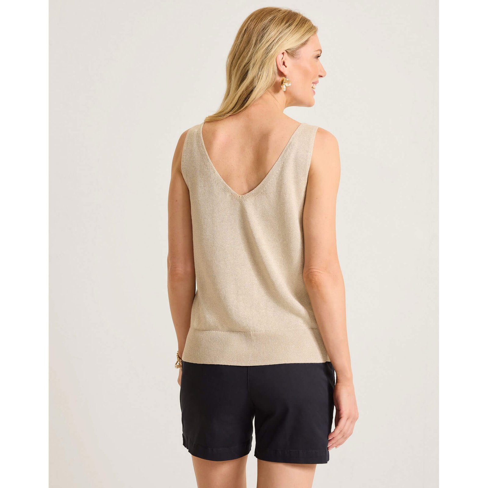 Have fun in the sun in this Tommy Bahama Women’s Shimmer Addison Tank Top in Soft Gold. This Shimmer Addison Tank Top by Tommy Bahama features sleeveless. scoop v-neck. back length: 22.5″ from shoulder to hem (size s). This Tommy Bahama Shimmer Addison Tank Top is made of 52% Linen. 30% Lenzing™Ecovero™Viscose. 12% Polyester. 6% Metallic.