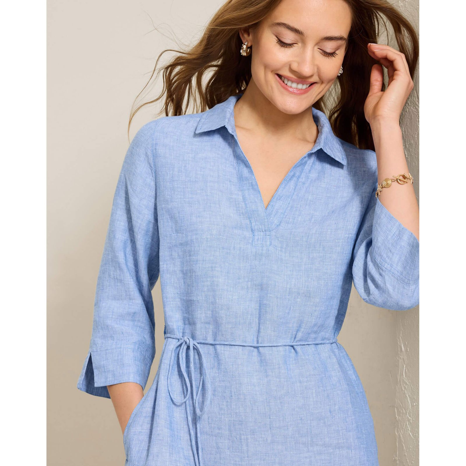 Make an entrance in this Tommy Bahama Women’s Two Palms 3/4 Sleeve Shift Dress in Buccaneer Blue. This Two Palms 3/4 Sleeve Shift Dress by Tommy Bahama features lined. removable self fabric belt with bamboo bead cord ends. pockets. back length: 36″ from shoulder to hem (size s). This Tommy Bahama Two Palms 3/4 Sleeve Shift Dress is made of 100% Linen. Remove Belt Before Cleaning. Machine Wash Cold With Like Colors On Gentle With Mild Detergent. Do Not Bleach. Hang To Dry. Warm Iron. Do Not Dry Clean.
