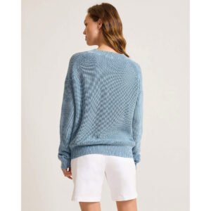 Tommy Bahama Women’s Indigo Palms Salt Wash Cotton V-Neck Sweater – Canyon Sky